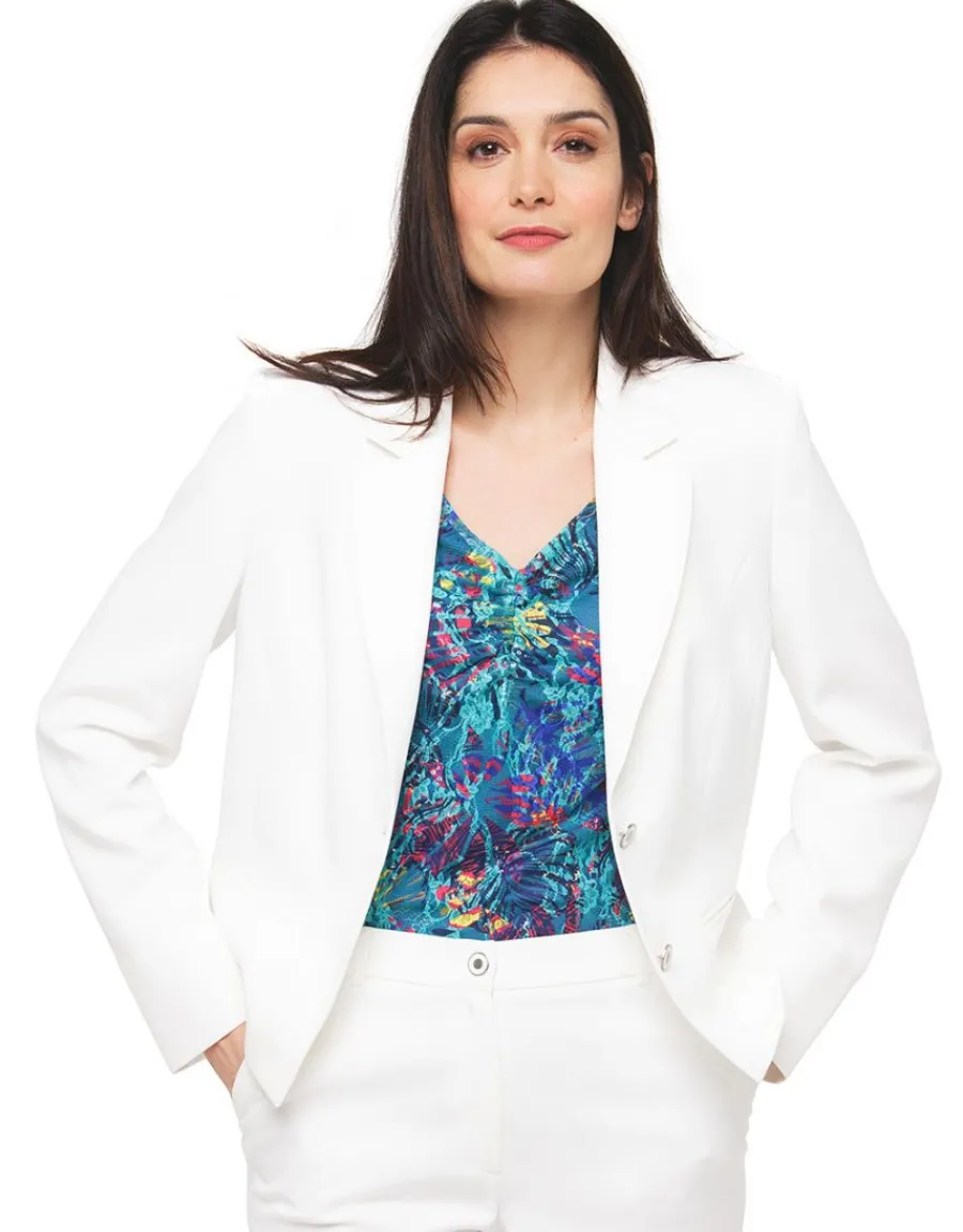 – Une belle veste habillée écrue, parfaite pour un ensemble chic