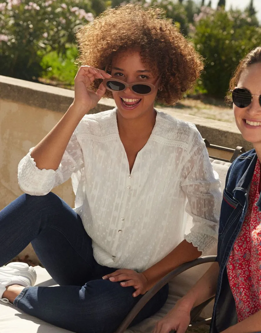 Idée look : séduisant chic avec le pull ajouré bronze (23ED4419050) et le sautoir à pampilles (23EC9009020), ou plus cool avec le pull en maille fantaisie écru (23ED4343060), accessoirisé d’une l’écharpe dans un superbe dégradé de bleus (23EC903308)