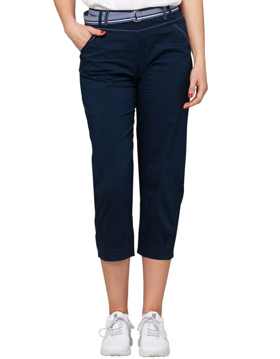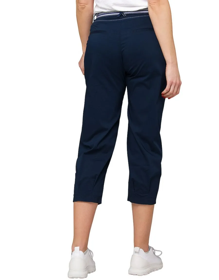 – Pantacourt bleu marine avec surpiqûres blanc et bleu