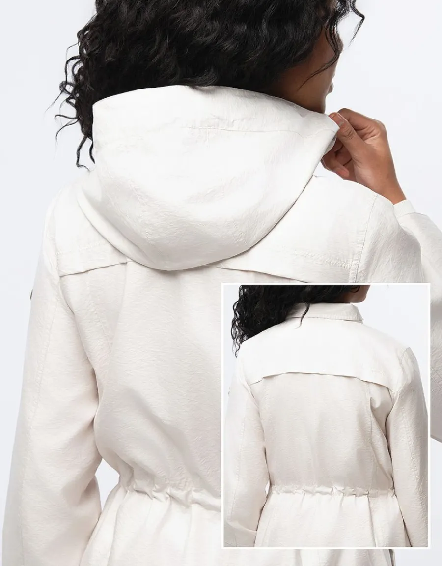 – Parka légère à capuche beige effet nacré