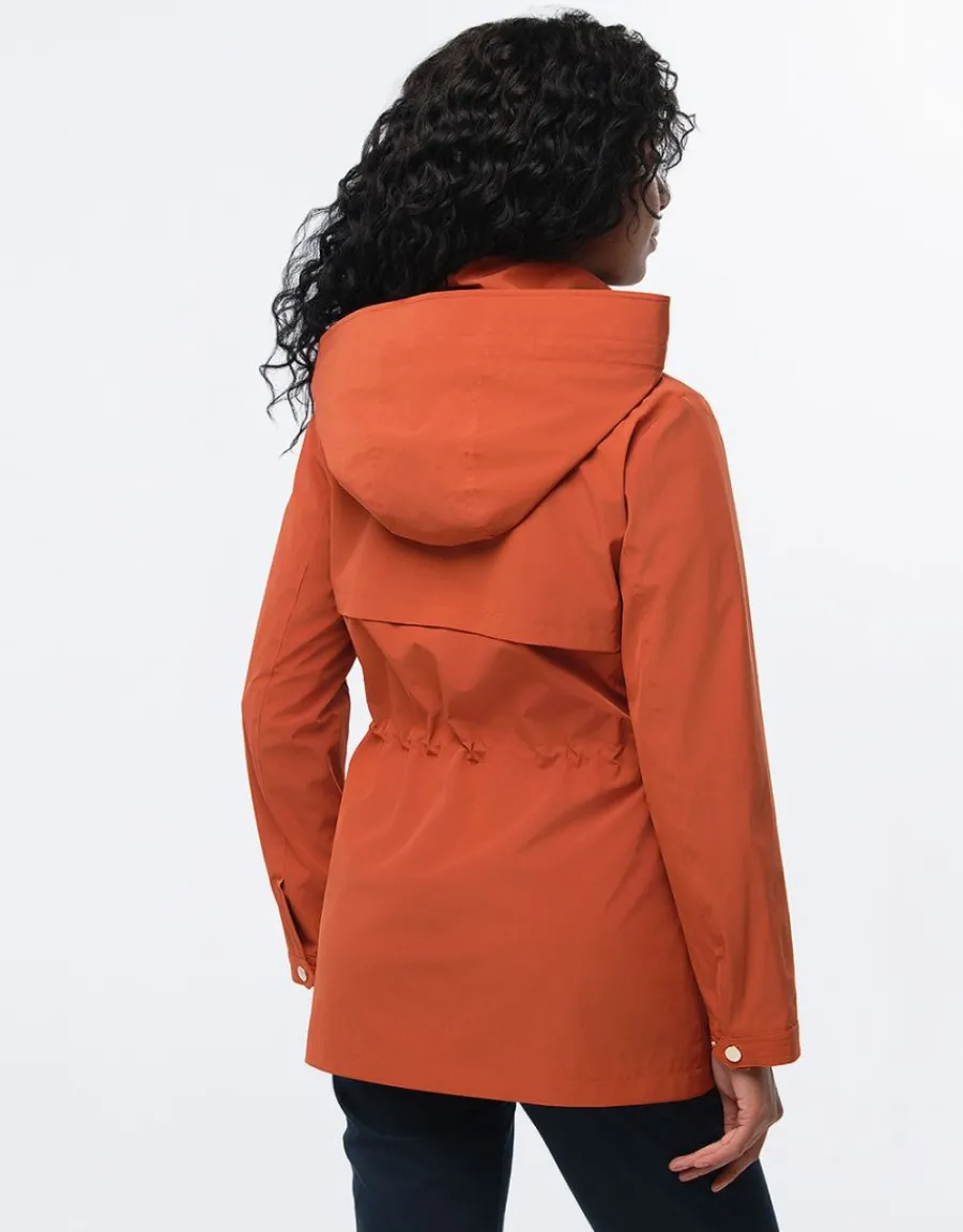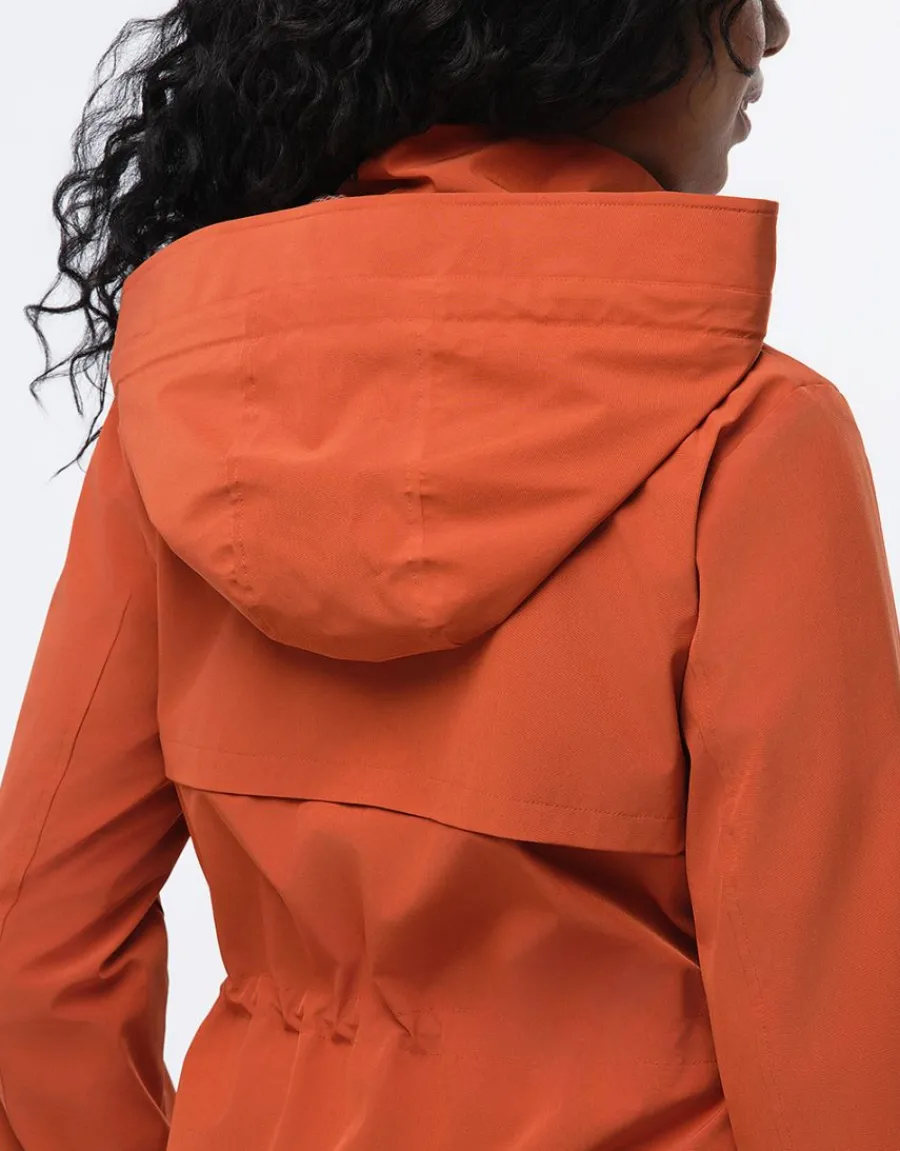 La parka légère à capuche terracotta de la marque Christine Laure est un choix idéal pour les journées de demi-saison. Sa coupe droite et ses liens de resserrage à l’intérieur permettent d’ajuster le vêtement selon vos préférences, garantissant confort et style. Cette parka se ferme par un zip au centre devant, agrémenté de boutons-pression dorés qui ajoutent une touche d’élégance. Ses manches longues sont dotées de boutons-pression, offrant la possibilité de les retrousser pour un look décontracté. Deux poches plaquées avec bouton et surpiqûres sont présentes sur le devant, ainsi qu’une poche intérieure pratique pour y glisser vos essentiels. La capuche, amovible et resserrable, procure une protection supplémentaire contre le temps changeant. Le vêtement est doublé d’un tissu imprimé dans des nuances écru et terracotta, ce qui rend l’ensemble harmonieux. Le logo CL doré sur la manche discreetement positionné témoigne du savoir-faire de la marque. Confectionnée dans une matière déperlante, cette parka est idéale pour se protéger des petits intempéries tout en restant stylé. Juliana, mesurant 1,76m, porte une taille 1, soulignant ainsi l’adaptabilité de ce modèle aux différentes morphologies.