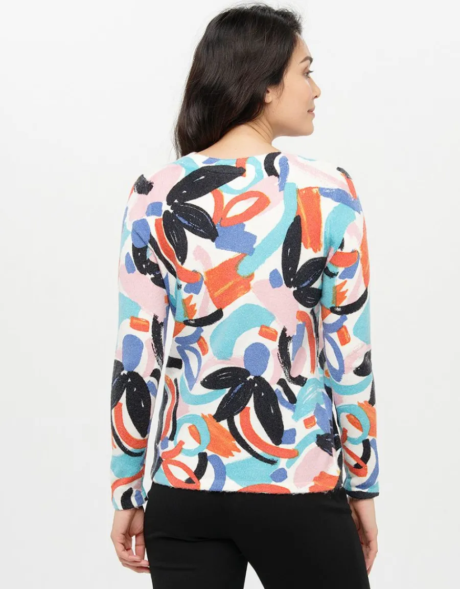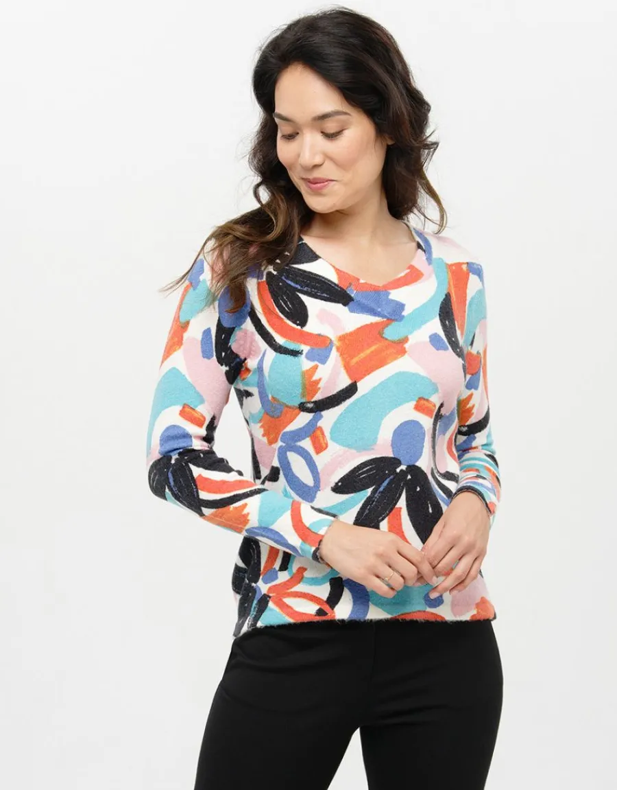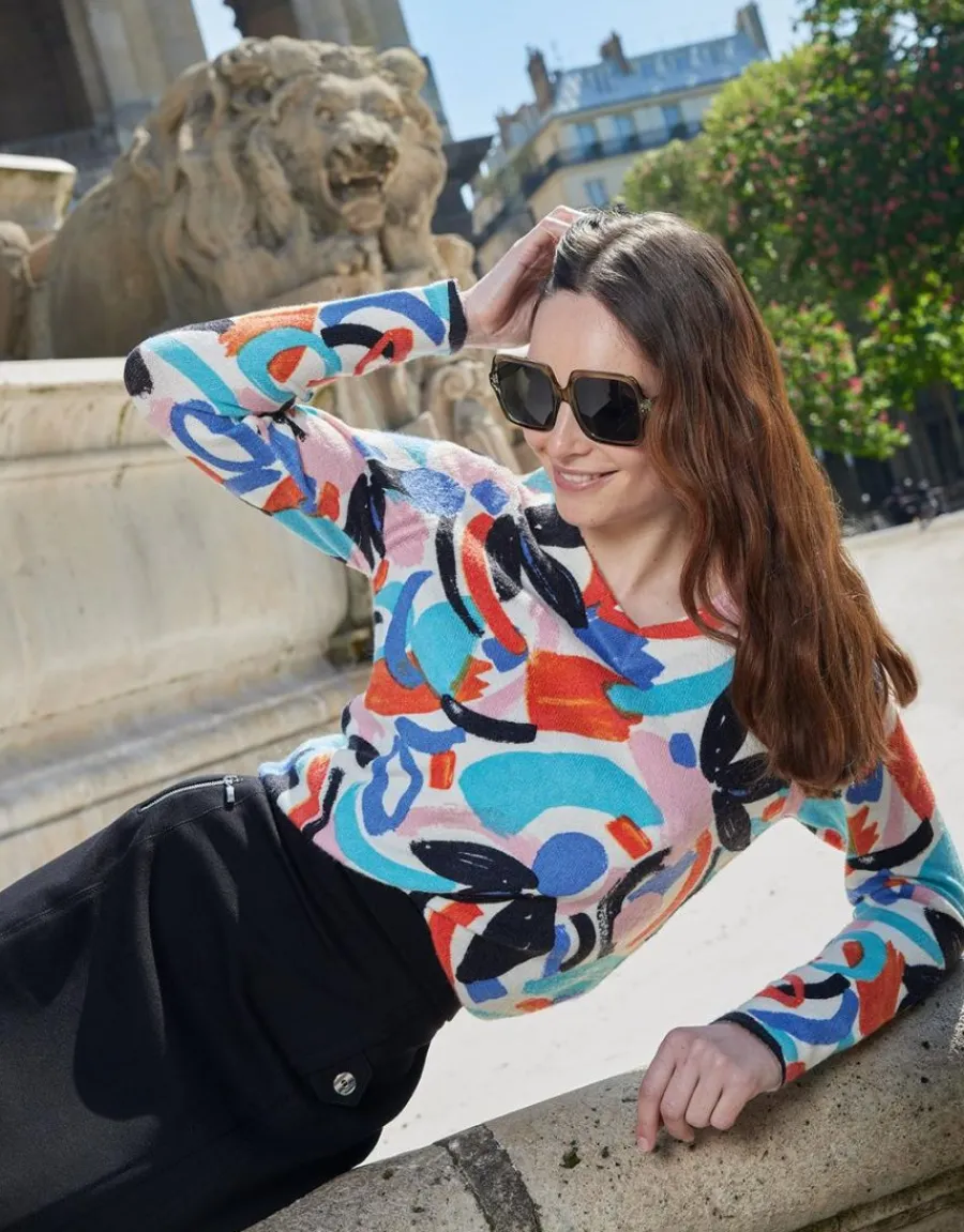 Pull fin arty écru : ce pull fin à motifs « arty » multicolore est un véritable coup de cœur pour les amateurs de mode. Sa coupe droite et son encolure en V lui donnent une allure moderne et féminine. Sa maille au toucher chaud vous procurera un confort optimal tout au long de la journée. Les manches longues vous tiendront bien au chaud pendant les journées fraîches. Les motifs dessinés qui évoquent les toiles des maîtres modernes apportent une touche artistique et originale à votre tenue. Parfait pour donner du peps à l’hiver, ce petit pull coloré va pouvoir se porter avec tous vos pantalons et jupes unis pour une touche fun et mode. Bérangère, qui mesure 1,76m, porte du 38 et le met en valeur à la perfection. Sa composition en 70% acrylique, 27% polyamide et 3% élasthanne garantit sa qualité et sa résistance. Sa longueur de 60 cm du haut de l’épaule jusqu’en bas pour la première taille conviendra à toutes les morphologies. Optez pour ce pull arty écru pour un look tendance et original qui ne passera pas inaperçu.