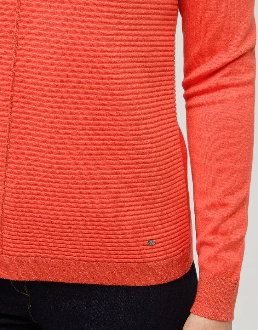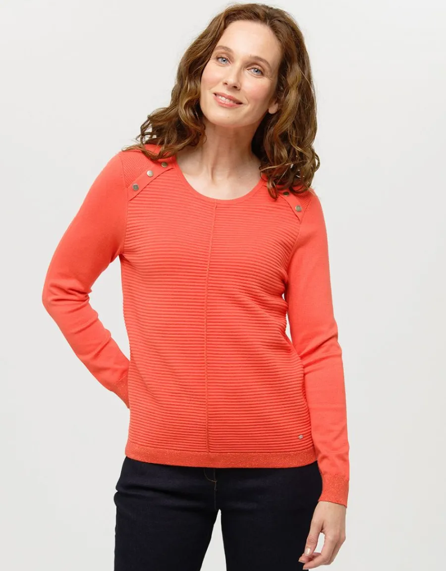 Le pull orange rayures est un véritable must-have pour la saison. Sa coupe droite et son encolure ronde avec faux boutonnage sur les épaules lui donnent une allure à la fois décontractée et sophistiquée. Les détails métallisés et les empiècements boutonnés ajoutent une touche d’originalité à ce pull déjà très tendance. Confectionné dans une maille de qualité, ce pull est à la fois confortable et élégant. Les manches longues et l’effet « rayures » en relief présent sur le devant lui confèrent un style résolument moderne et chic. La couleur orange lumineuse apporte une touche de bonne mine à n’importe quelle tenue. Porté par Kristell qui mesure 1,76m et porte du 38, ce pull s’adapte à toutes les morphologies. Sa composition en polyamide, viscose, polyester et fibres métallisées garantit une qualité et une durabilité exceptionnelles. Avec une longueur de 60 cm du haut de l’épaule jusqu’en bas pour la première taille, ce pull est parfait pour être porté avec un jean slim ou une jupe crayon pour un look casual chic. Que ce soit pour une journée de travail ou une sortie entre amis, ce pull orange rayures est le choix idéal pour être à la fois confortable et stylé. Ajoutez-le à votre garde-robe pour une touche de couleur et de modernité qui ne passera pas inaperçue.