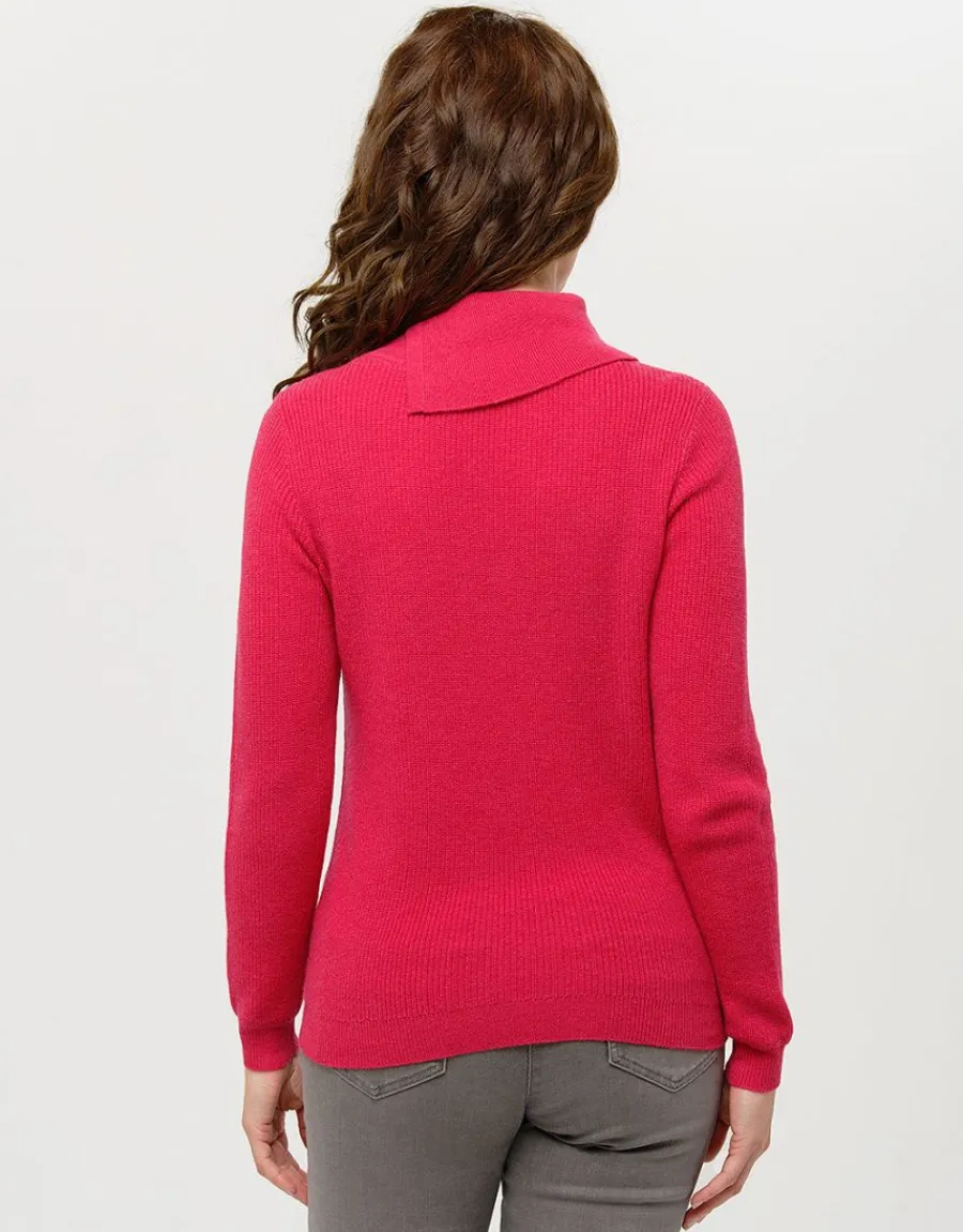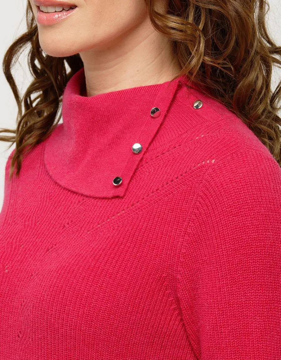 – Pull fuchsia à grand col boutonné