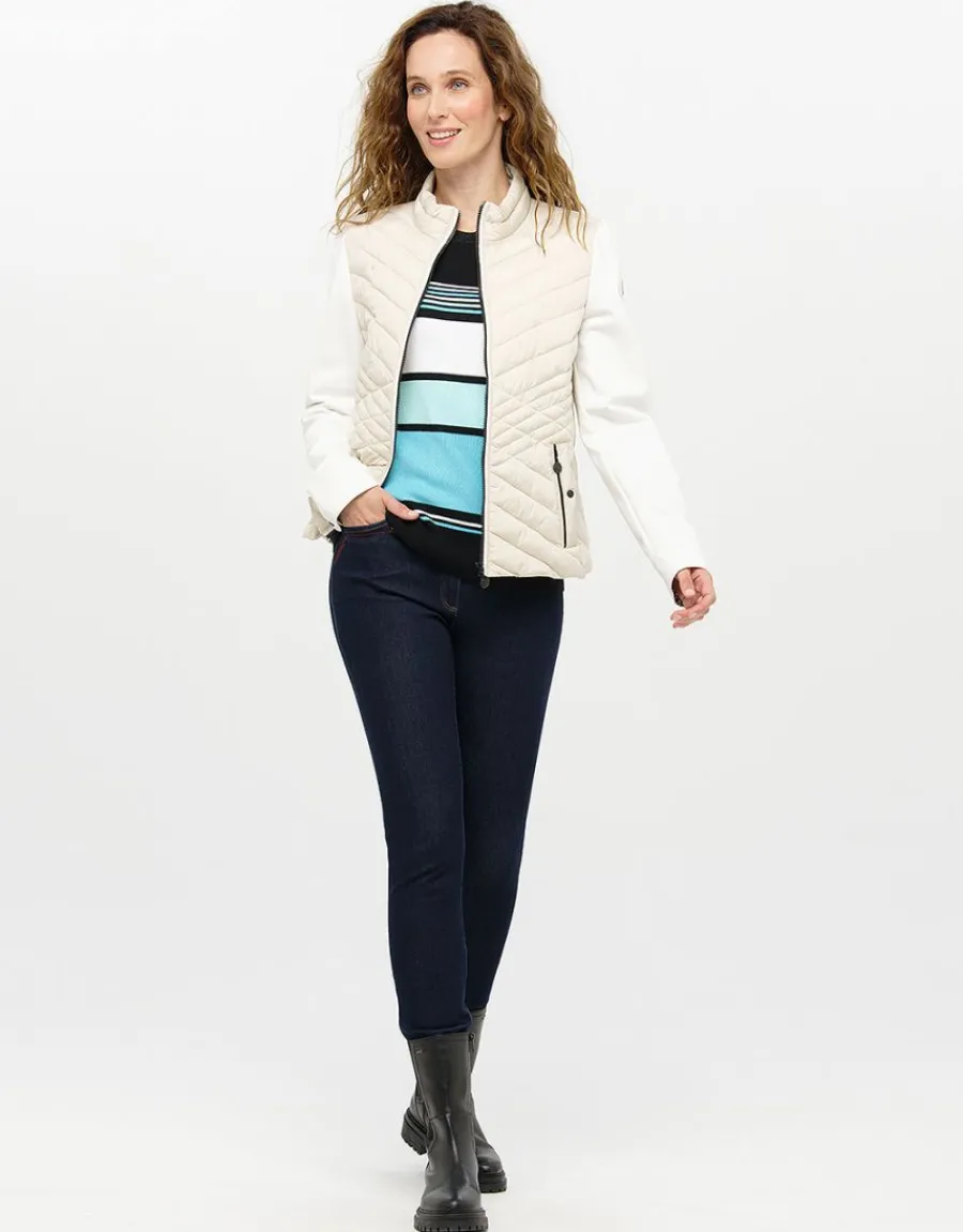 – Déclinaison précieuse de la marinière, le pull à rayures turquoise dégradé donne une allure vraiment raffinée.