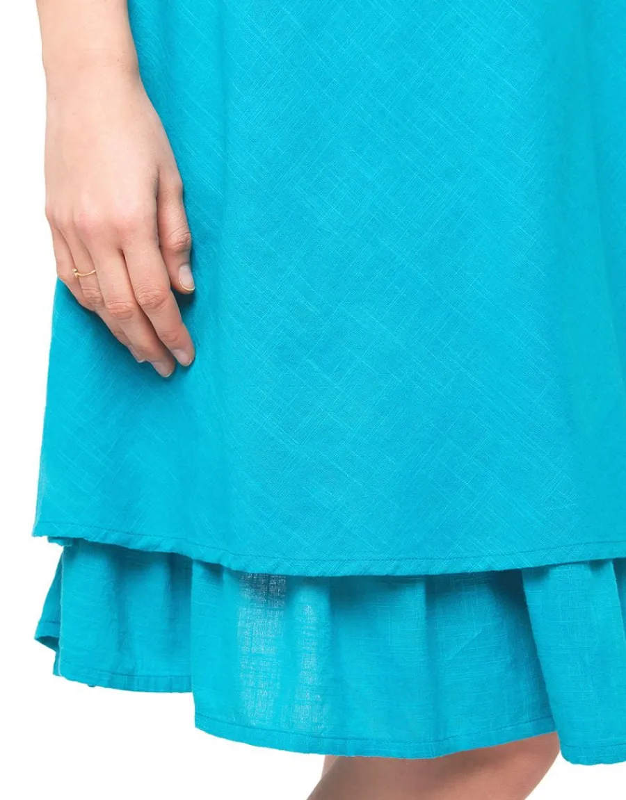 – Robe ajourée bleue 100% coton