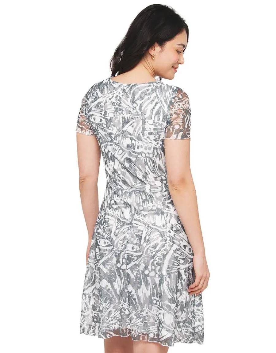 – Robe dentelle imprimée vert kaki et blanc