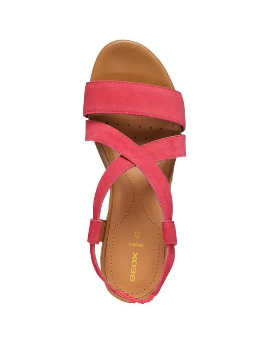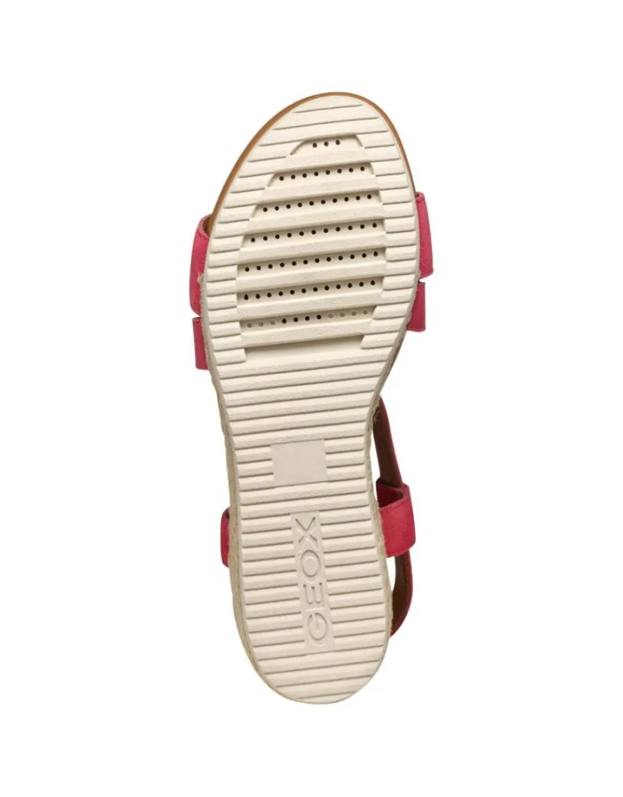 – Sandales talon compensées cuir rouge Geox modèle Ischia Corda