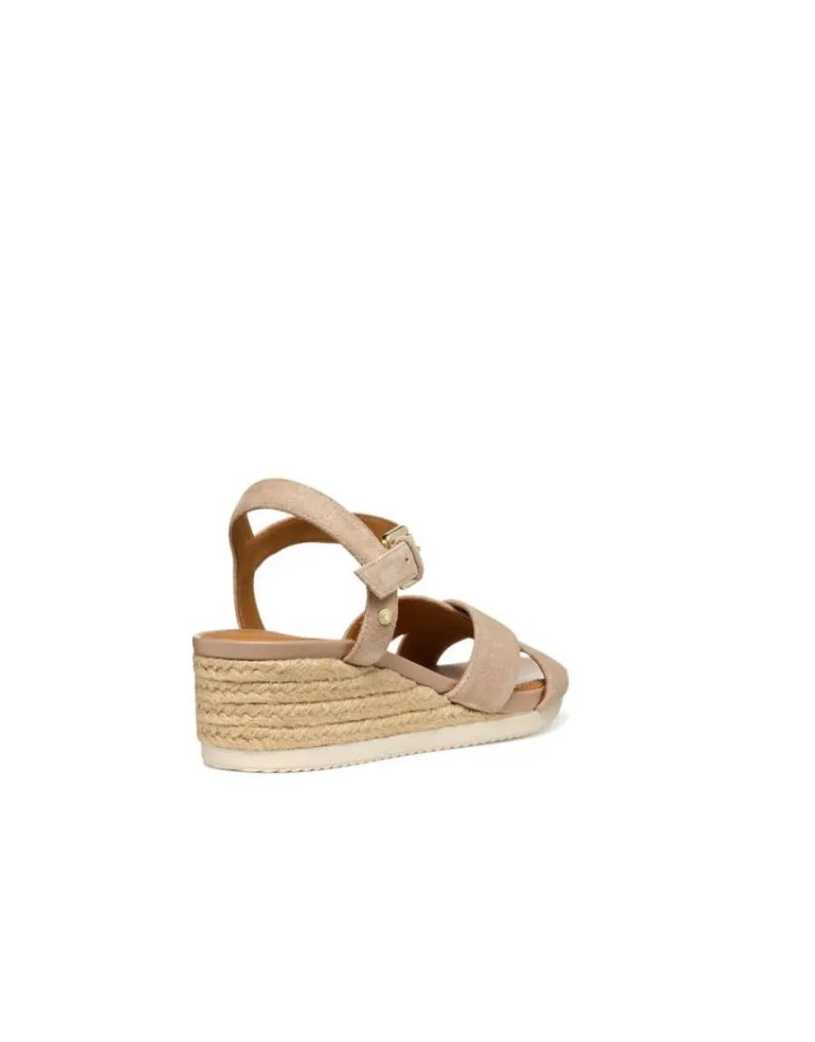 – Sandales compensées cuir beige rosé Geox modèle Ischia Corda