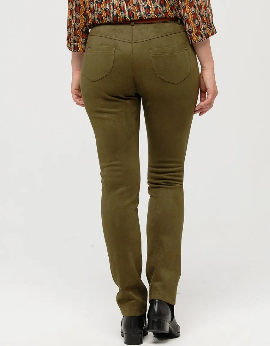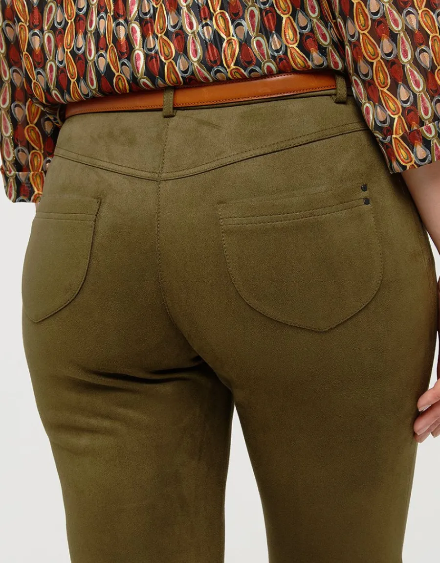 – Pantalon coupe jean en suédine vert kaki