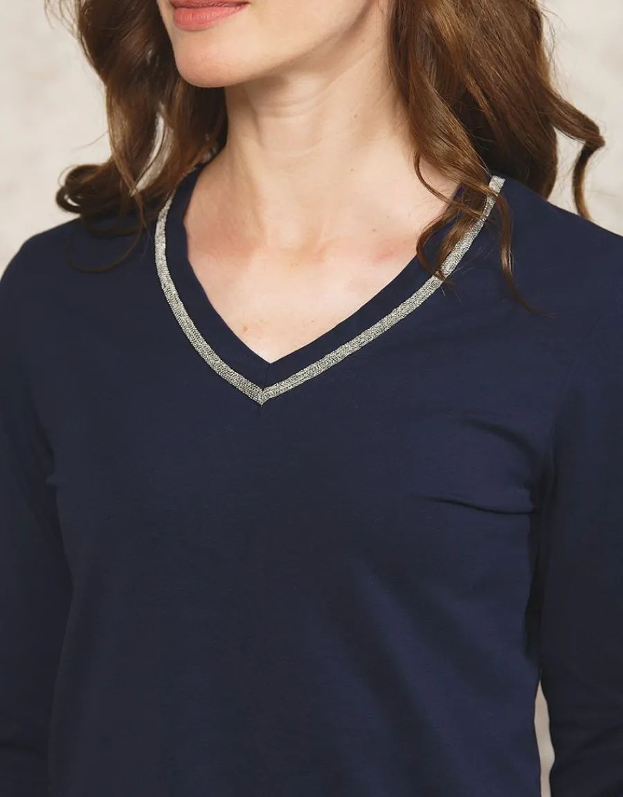 – Col V avec liseré argenté pour apporter de la lumière