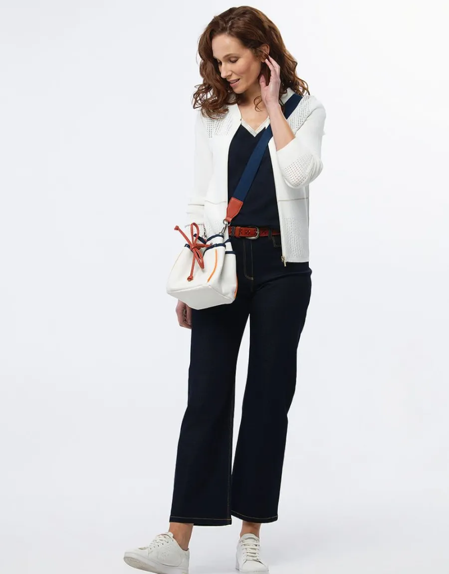 Découvrez le T-shirt en coton et modal marine de la marque Christine Laure, un incontournable pour votre garde-robe. Avec sa coupe droite, ce T-shirt offre un style intemporel et décontracté, idéal pour les occasions quotidiennes. L’encolure en V ajoute une note de féminité tout en restant très confortable. Les manches courtes légèrement couvrantes apportent une touche de modestie tout en laissant une liberté de mouvement agréable. Ce modèle se distingue par son détail subtil : un galon fantaisie brillant à l’encolure, qui apporte une légère touche d’élégance sans en faire trop. Confectionné à partir d’un tissu jersey flammé doux et léger, il se porte avec aisance tout au long de la journée. Kristel, qui mesure 1,76 m, porte ici une taille 1, ce qui donne une idée de la coupe du produit. Avec une longueur de 60 cm pour la première taille, ce T-shirt s’adapte aisément à votre silhouette. Avec sa composition de 75% coton et 25% modal, il offre une sensation agréable sur la peau et une excellente respirabilité, parfait pour les journées ensoleillées ou les moments de détente. Optez pour ce T-shirt polyvalent qui s’associe facilement avec vos tenues préférées, que ce soit un jeans, un short ou une jupe.