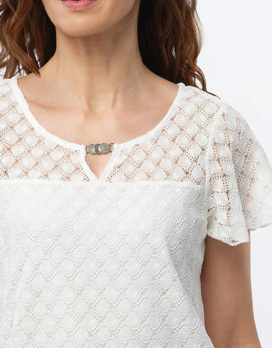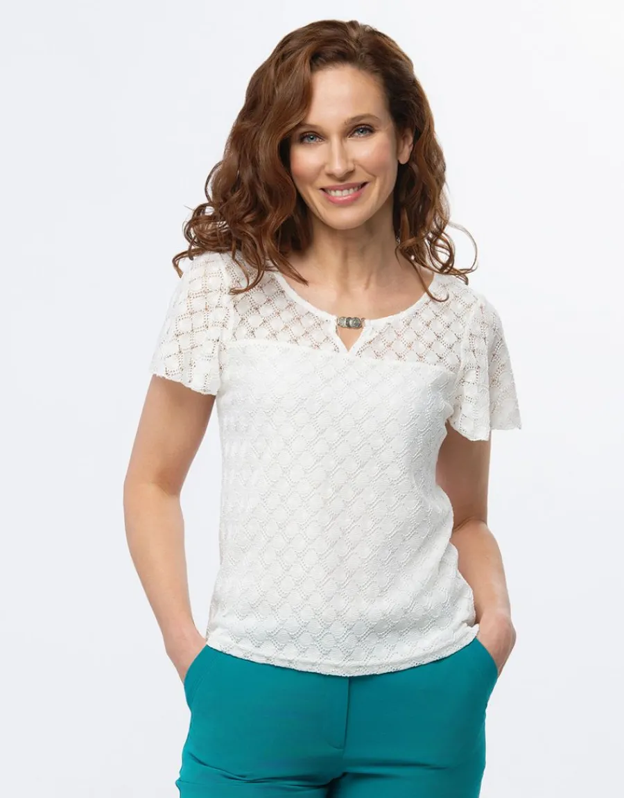 Optez pour l’élégance avec ce t-shirt en dentelle chic écru de la marque Christine Laure. Avec sa coupe droite et sa longueur de 60 cm pour la première taille, ce modèle mettra en valeur votre silhouette tout en garantissant un confort optimal. L’encolure ronde, ornée d’un subtil détail en bijoux argent, apporte une touche raffinée et délicate. Les manches courtes en coupe papillon ajoutent légèreté et mouvement, parfaites pour les journées ensoleillées ou les soirées décontractées. À l’intérieur, une doublure en jersey écru assure un port agréable et évite toute transparence, vous permettant de vous sentir en confiance en toutes circonstances. Kristel, notre modèle, mesure 1,76 m et porte une taille 1, offrant ainsi un aperçu de l’ajustement idéal de ce t-shirt. Grâce à sa composition, ce vêtement est facile d’entretien et résistant, ce qui en fait un essentiel de votre garde-robe. Que ce soit pour un déjeuner entre amis ou une sortie en ville, ce t-shirt en dentelle saura s’adapter à toutes les occasions, faisant de vous une icône de style en toute simplicité.