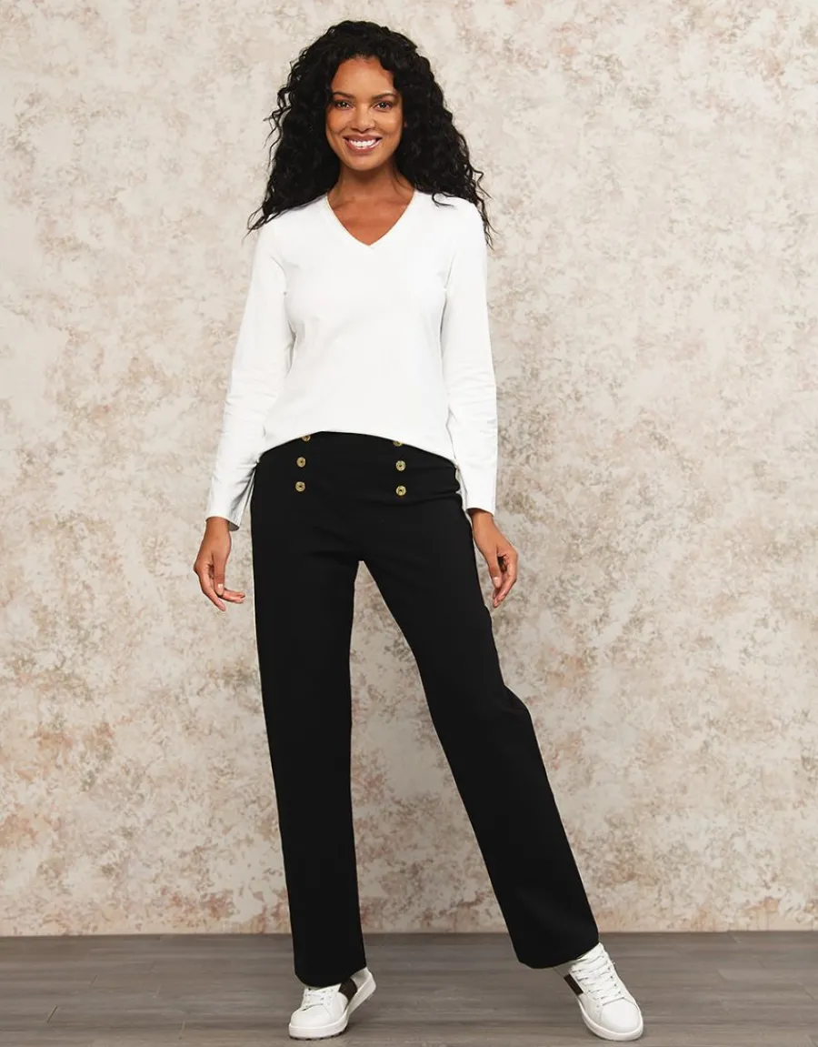 Le T-shirt écru en coton est un incontournable de la garde-robe, alliant confort et élégance. Sa matière très douce au porter procure une sensation agréable sur la peau. Le col V orné d’un liseré doré apporte une touche de sophistication et de luminosité à l’ensemble. Les manches longues ajoutent une note de chaleur et de style à ce basique revisité. Parfait pour toutes les occasions, ce T-shirt s’adapte à tous les looks, que ce soit pour une tenue décontractée ou plus habillée. Juliana, qui mesure 1,76m, porte une taille 38 pour une coupe ajustée et confortable. La composition du T-shirt est un mélange de 5% d’élasthanne et de 95% de coton, assurant ainsi une grande liberté de mouvement et une bonne respirabilité. Avec une longueur de 60 cm pour la première taille, ce T-shirt convient à toutes les morphologies et peut être facilement associé à d’autres pièces de votre dressing pour créer des tenues variées et tendance. Optez pour ce T-shirt écru en coton pour un look intemporel et raffiné au quotidien.