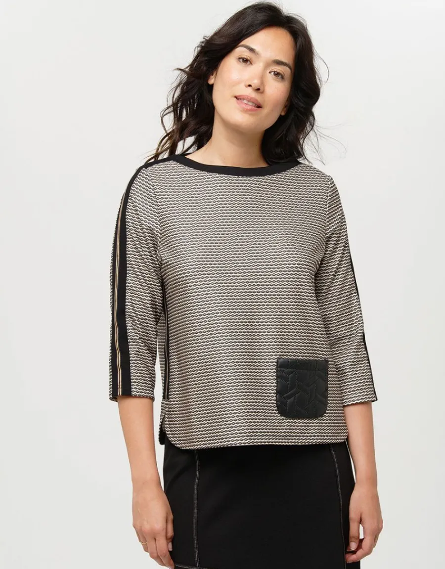 Le « Top maille ample noir » est un incontournable de votre garde-robe. Avec son esprit t-shirt en maille milano à motifs, il offre une coupe ample et droite pour un confort optimal. Son encolure ronde et sa maille milano stretch apportent une touche de modernité à votre tenue. Les manches 3/4 ajoutent une touche d’originalité, tandis que la poche plaquée en simili cuir matelassé apporte une touche d’élégance. Les détails soignés de ce top ne manqueront pas de vous séduire : un galon autour de l’encolure, avec un rappel sur le dessus des manches et sur les côtés. Décontracté et tendance, ce top tunique à mini motifs vous permettra d’ajouter une touche mode à vos slims et chinos noirs. Que ce soit pour une journée décontractée ou une soirée entre amis, ce top saura vous accompagner en toute occasion. Bérengère, qui mesure 1,76m, porte du 38 et met en valeur ce top avec élégance. Sa composition en 95% polyester et 5% élasthanne garantit un tombé parfait, tandis que les garnitures en viscose, polyamide et polyester ajoutent une touche de sophistication. Avec une longueur de 62 cm du haut de l’épaule jusqu’en bas pour la première taille, ce top s’adaptera à toutes les morphologies. En somme, le « Top maille ample noir » est un indispensable de votre dressing. Confortable, élégant et tendance, il saura vous accompagner au quotidien avec style. N’hésitez plus et ajoutez-le à votre collection dès maintenant.